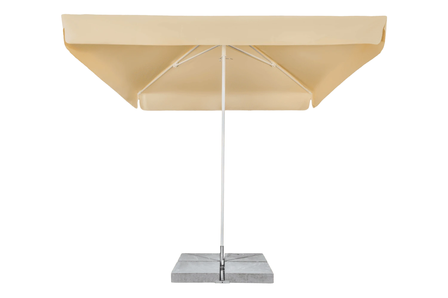 W odróżnieniu od podstawy okrągłej, stalowa podstawa krzyżowa umożliwia łatwe przestawienie parasola w razie potrzeby, co czyni ją praktycznym rozwiązaniem w przestrzeniach, gdzie parasole są okazjonalnie przemieszczane. Sama konstrukcja pozostaje lekka przed dociążeniem płytami, dzięki czemu transport i montaż są szybkie i wygodne.